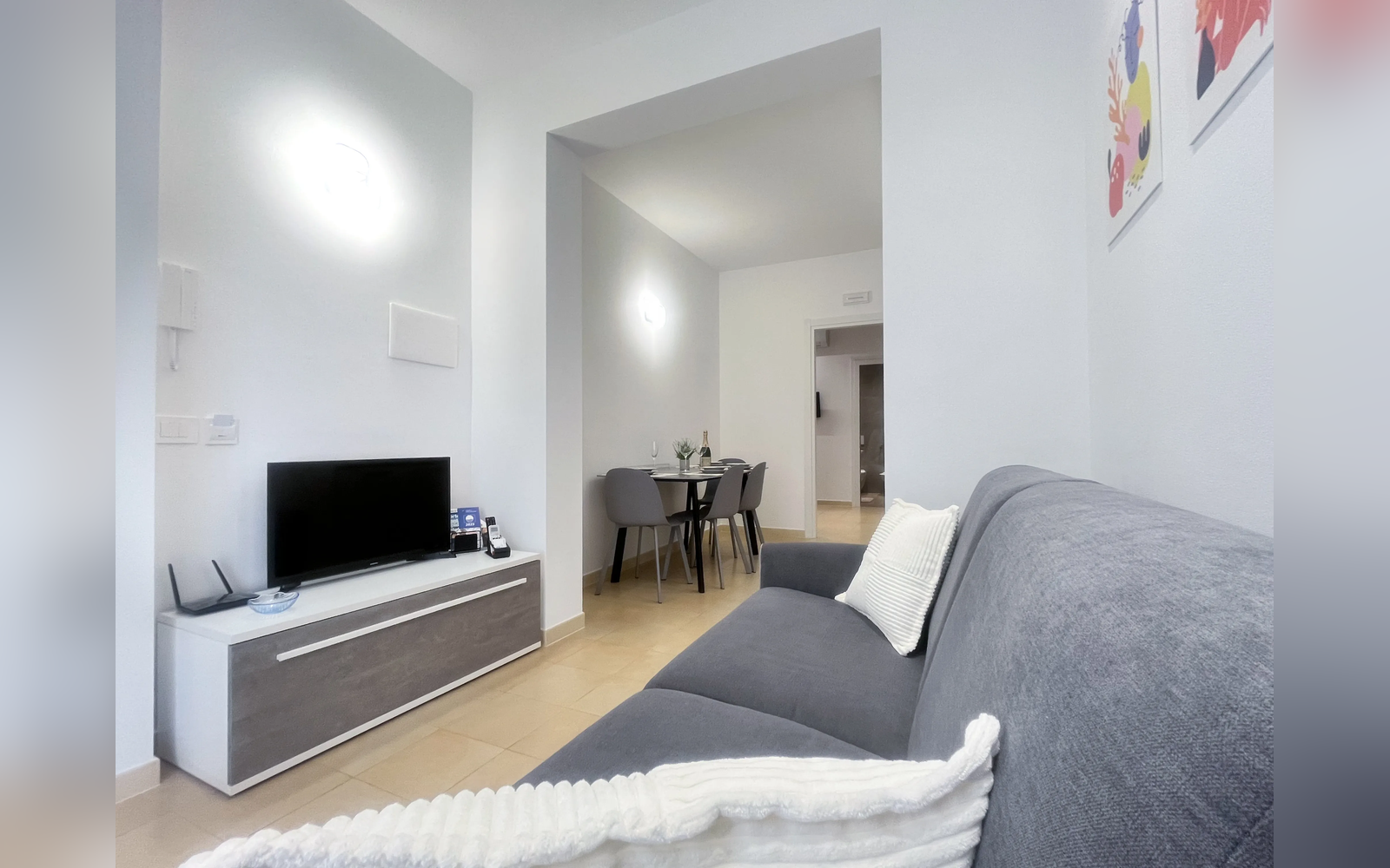 L’appartamento può ospitare fino a 4 persone ed è ideale per 2 adulti e 2 bambini. Con una superficie di 45 m², è composto da:
